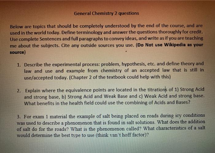 General Chemistry 2 Questions Below Are Topics That Chegg Com